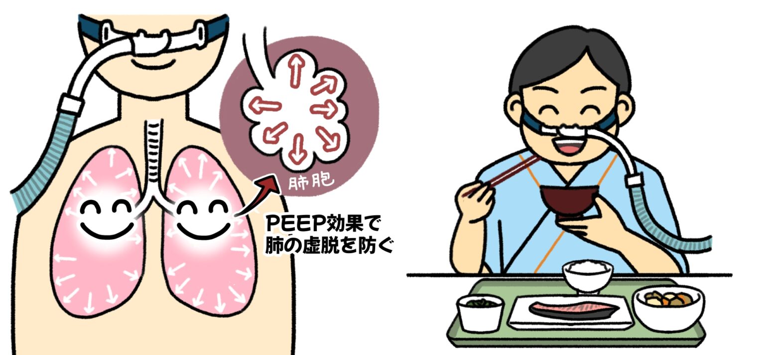 医療従事者向け情報サイト「ケアのあるある知恵袋」の挿絵イラストを描かせていただきました。記事タイトル:ネーザルハイフローとは?看護のポイント